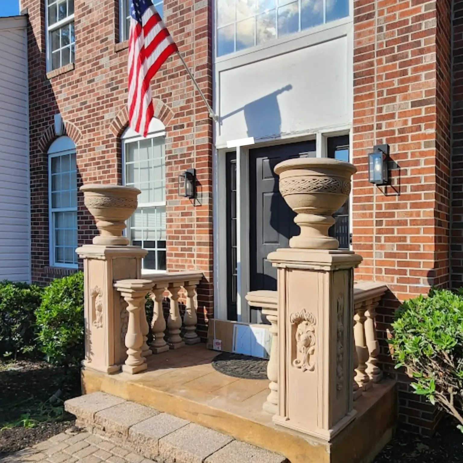 Installing Type 1 balustrade  with matching Urns on top of 14x14x42″ Posts, Little Falls, NJ